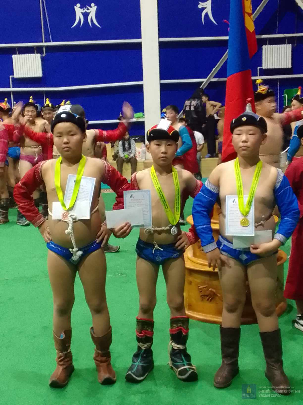 8-9 насны ангилалд 104 хүүхэд барилдаж Гүн галуутай цогцолбор сургуулийн сурагч Д.Батбилэг үзүүрлэн мөнгөн медаль, Б.Билгүүн шөвгөрч хүрэл медаль